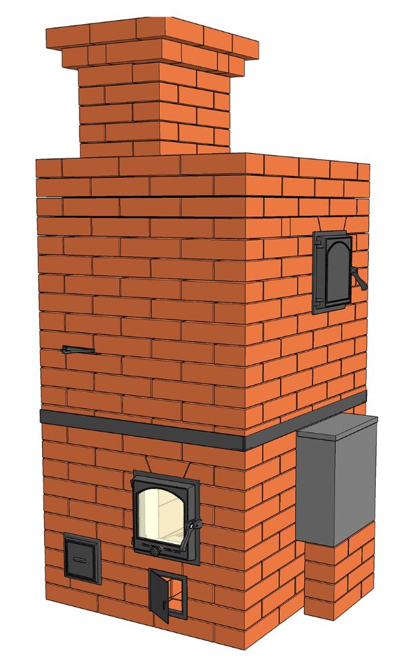 Пар получают от полива раскаленных камней водой со стороны парного помещения. В задней стенке каменки устанавливается дверка, через которую льют воду на горячую закладку. Сама дверка должна быть герметичной, чтобы во время топки печи не выходил дым через щели и не коптил стенки печи. Ручку для открывания дверки, во избежание ожогов рук, делают с деревянным наконечником. При необходимости размеры печи по высоте можно изменить. Сечение дымовых каналов при этом увеличивать не следует.