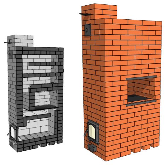 Этот проект авторский, сделан по аналогам печей, виденных в Пермском крае в конце 20-го века. Вместо арочного свода использована, упрощенная для монтажа, ремонтопригодная конструкция из шамотного кирпича.