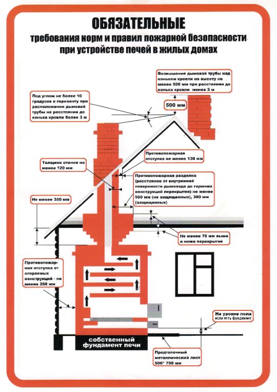 Размеры разделок и отступок у печей и дымовых каналов